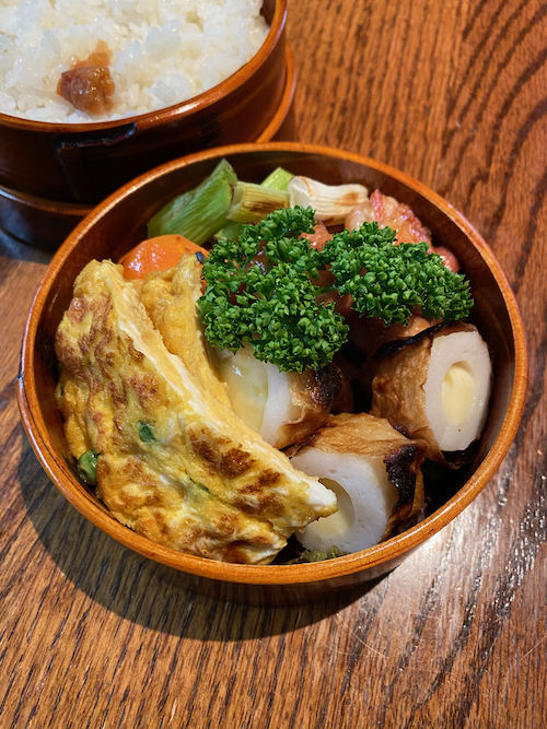 愛用しているのは、『ぬし熊』の電子レンジ対応の曲げわっぱ弁当箱と大館曲げわっぱのはんごう弁当箱です。